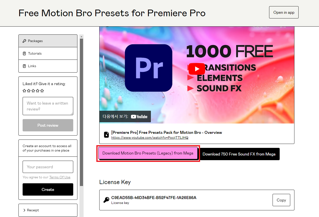 저 같은 경우에 이 프리셋을 설치할 때는 라이센스 키를 작성을 안해도 괜찮았었는데요.