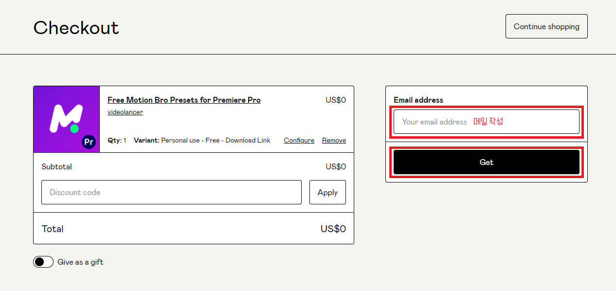 앞의 방법과 마찬가지로 무료로 담아준 다음 이메일을 작성하여 구매를 해줍니다.